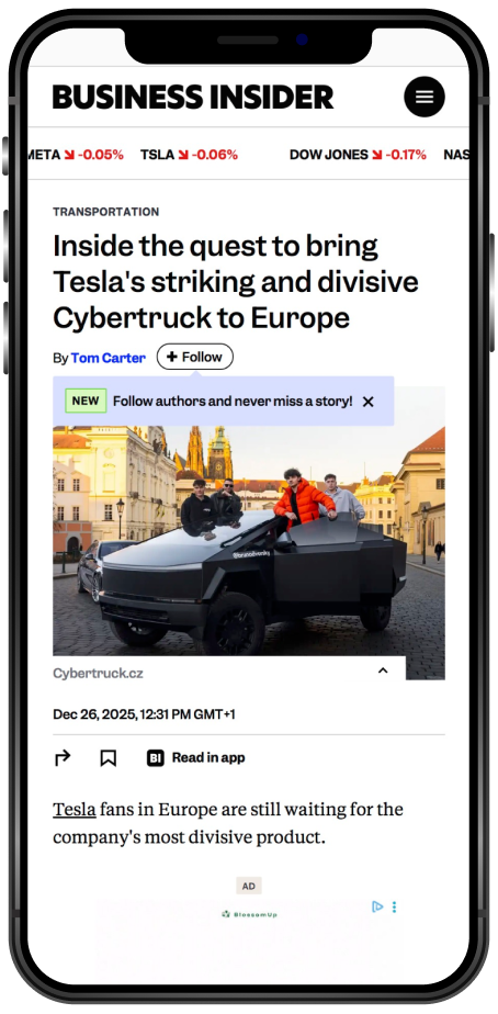 Our activities with Cybertruck have received attention from many media outlets and popular blogs. Your brand will be part of these successes.
